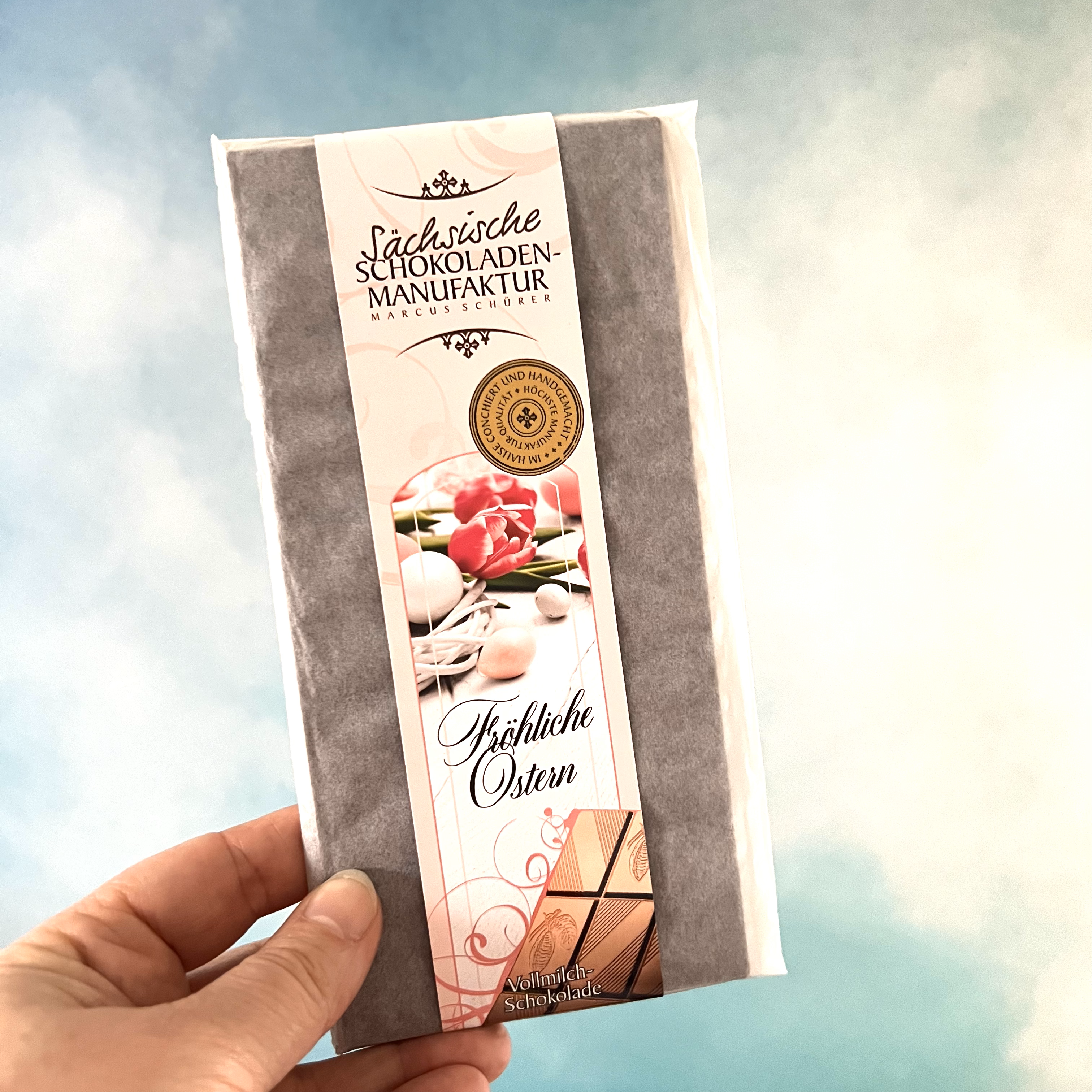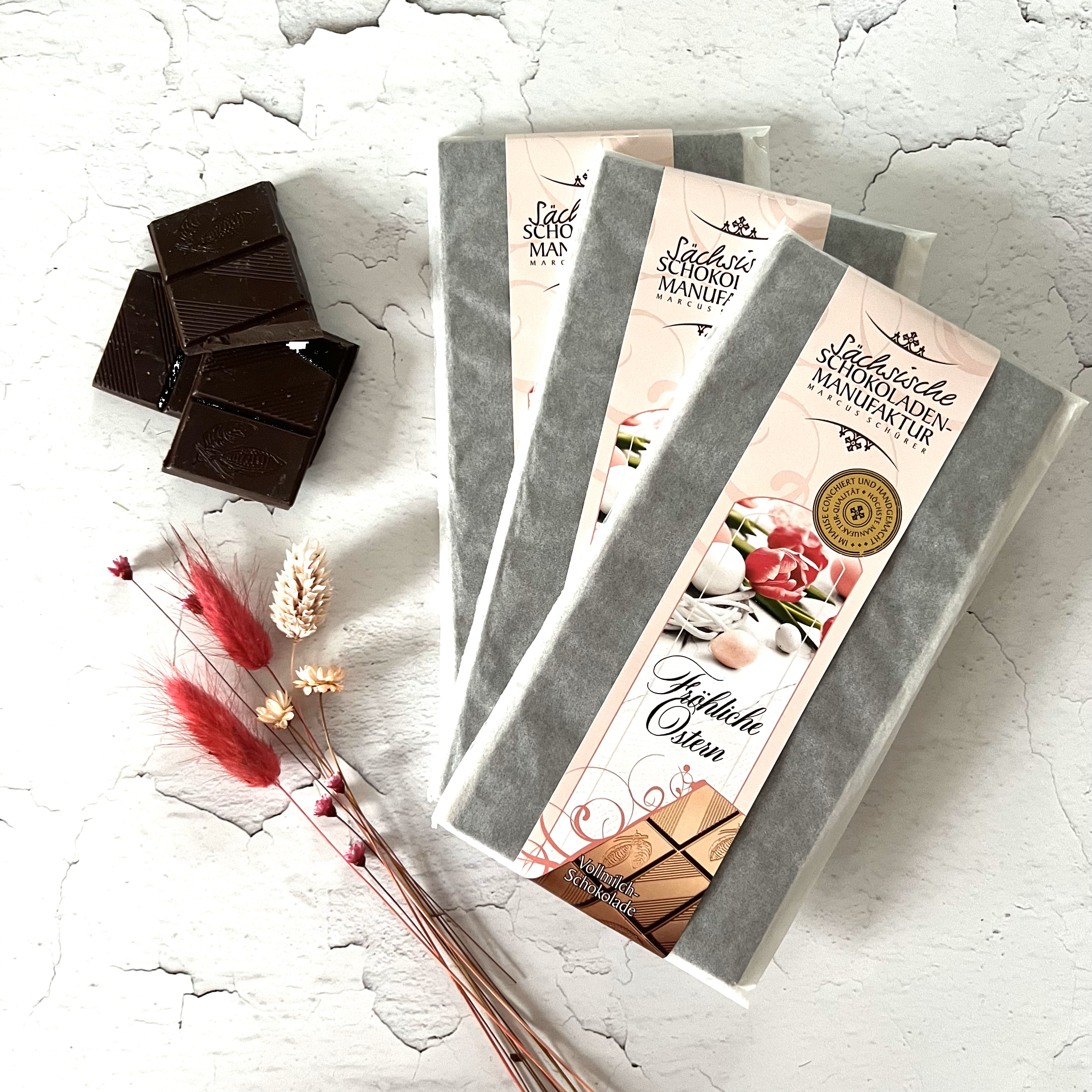 Edelvollmilchschokolade 47 % Kakao, 100 g „Fröhliche Ostern“